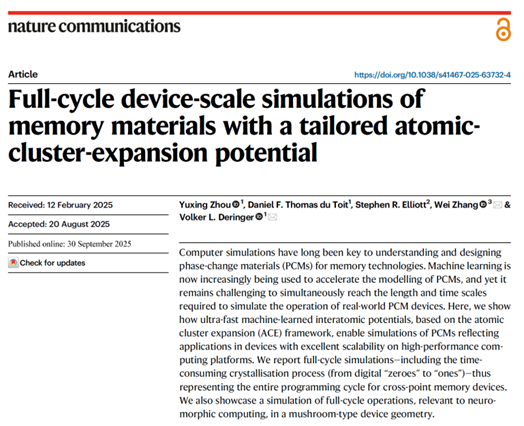 2025年9月30日,《自然·通讯》(Nature Communications 2025, 16, 8688)发表了题为“相变存储材料量专用原...