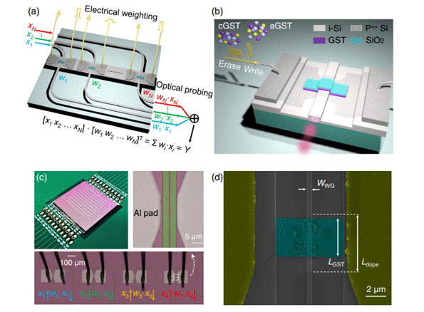 图3 基于相变材料的光电混合型存内点积计算平台。