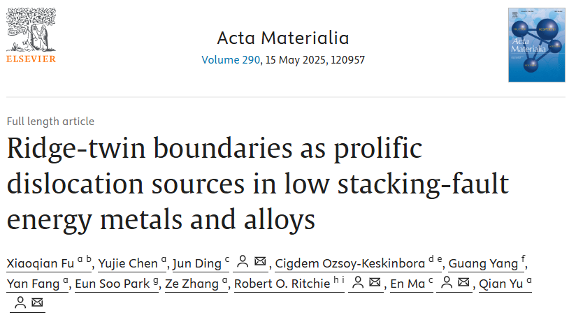 Link:Ridge-twin boundaries as prolific dislocation sources in low stacking-fault energy metals and alloys - ScienceDirect