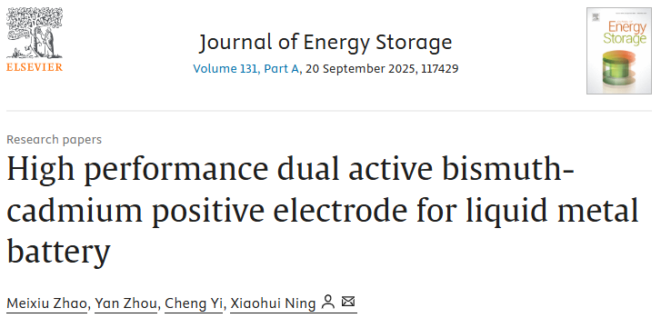 Link:High performance dual active bismuth-cadmium positive electrode for liquid metal battery - ScienceDirect