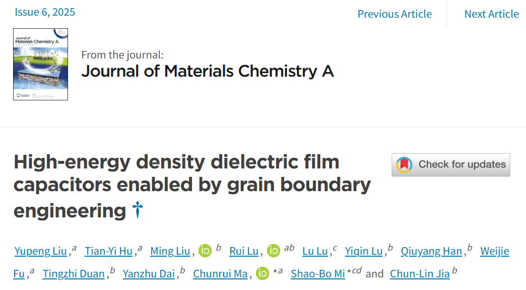 Link:High-energy density dielectric film capacitors enabled by grain boundary engineering - Journal of Materials Chemistry A (RSC Publishing)