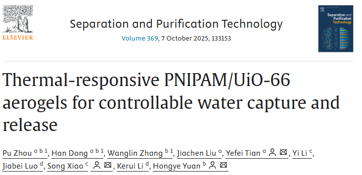 Link:Thermal-responsive PNIPAM/UiO-66 aerogels for controllable water capture and release - ScienceDirect